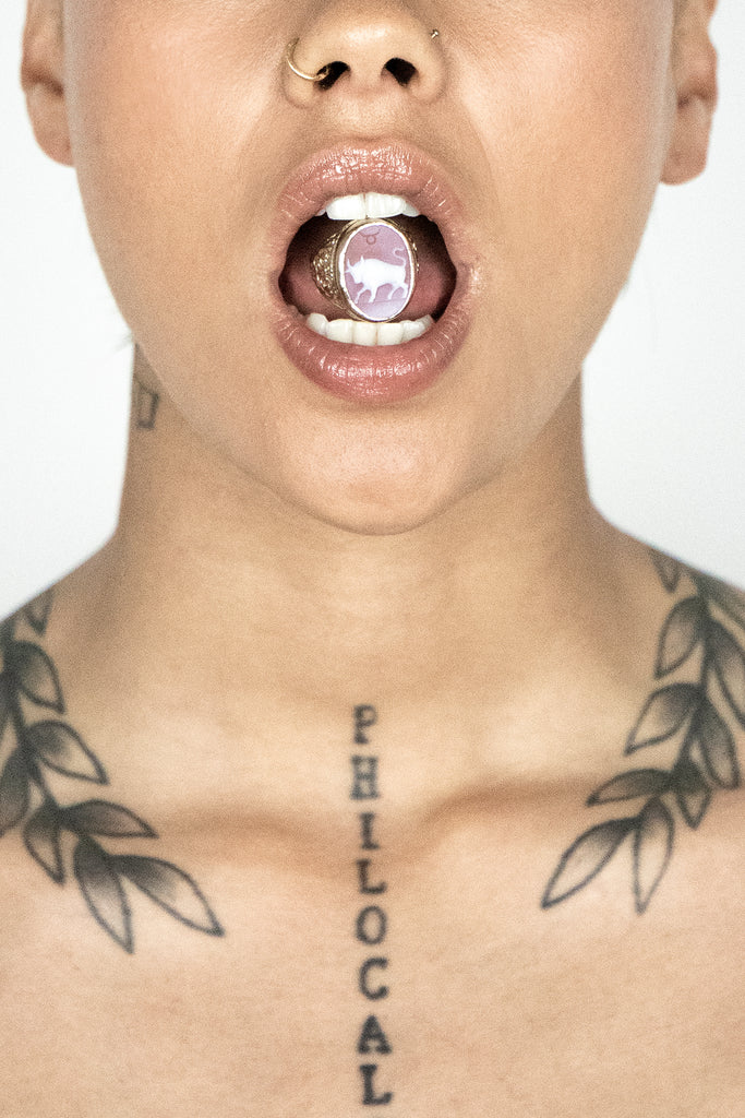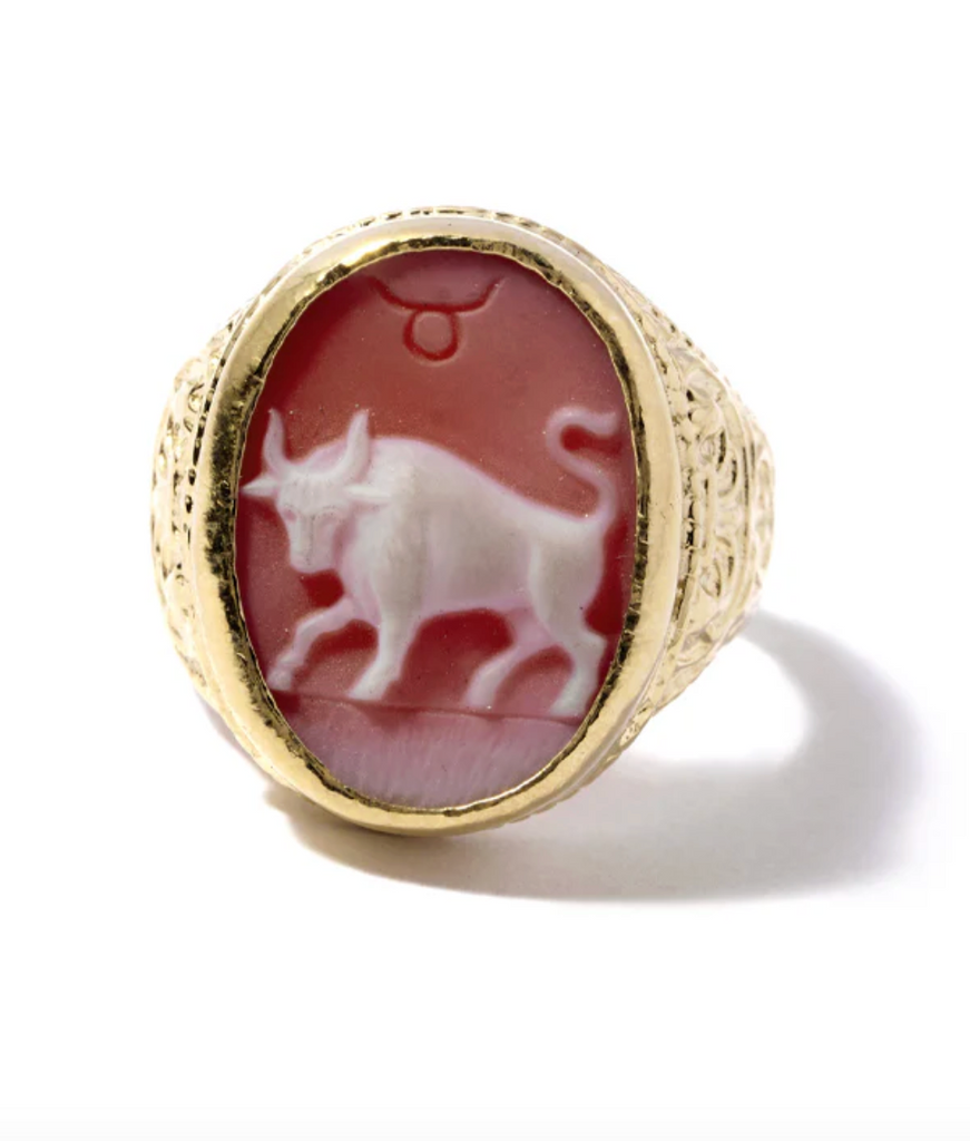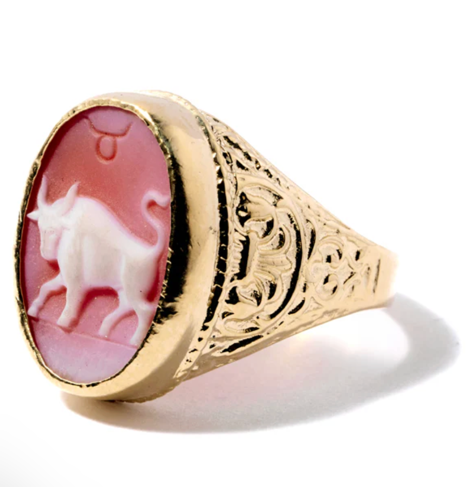 Taurus ring met een camee in 9 karaat. Enkel stuk, ringmaat 19,5mm.