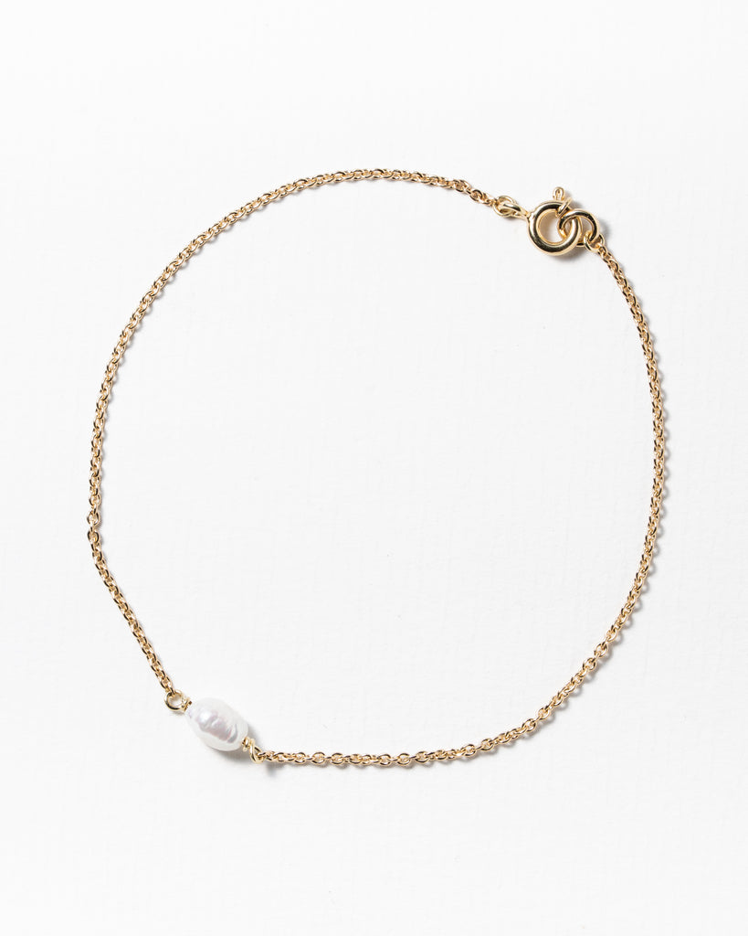 Armband gemaakt in 14k geelgoud met een witte parel. Lengte van de armband is 18cm. De armband kunnen we aanpassen in lengte.
