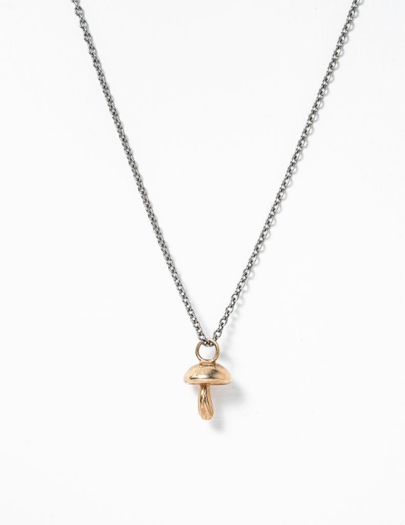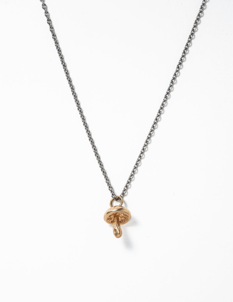 Chunky paddenstoel gemaakt van 9 karaat aan een ankerketting van edelstaal met zilveren slot. Lengte ketting is 60 cm, dikte schakels is 1,8 mm.