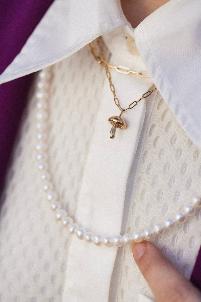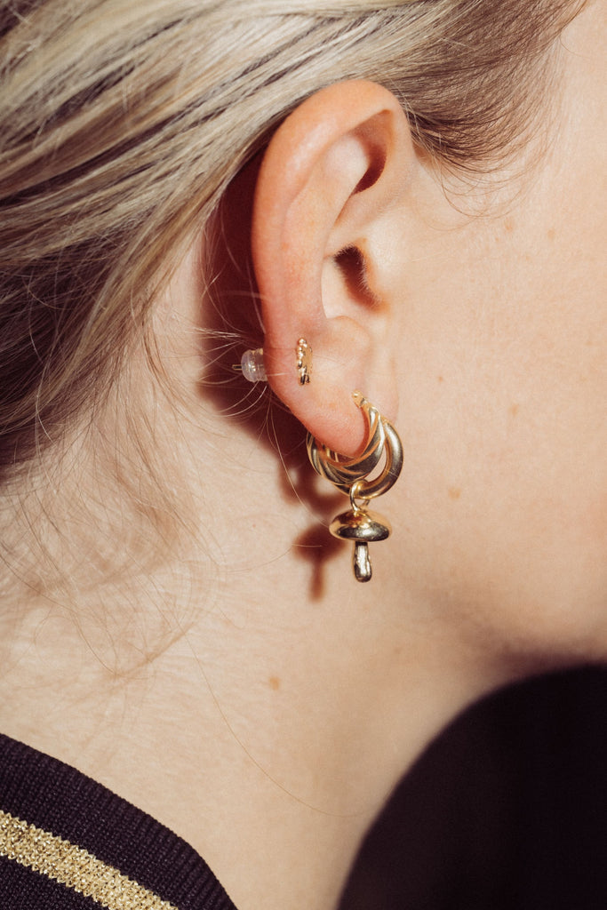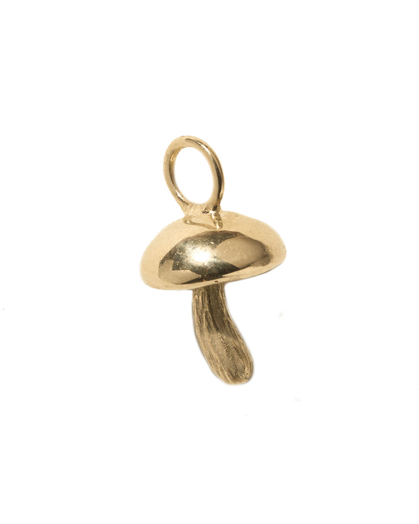De paddenstoel hanger van 9 karaat. afmetingen 17x10 mm. Te dragen als hanger of als earring charm.