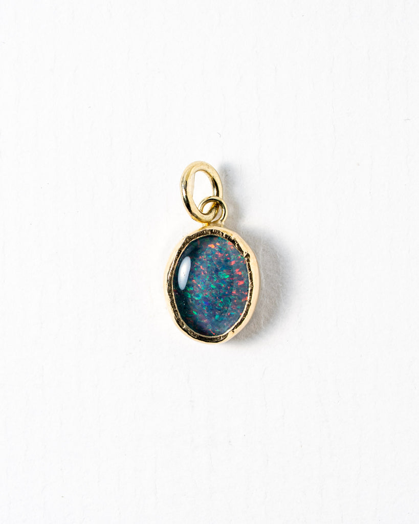Hangertje gemaakt van 14k geelgoud met een triplet opaal. Afmetingen steen met zetkast: 9.6 x 8mm. Lengte van hanger met hang oog: 16,8mm.