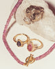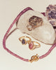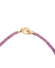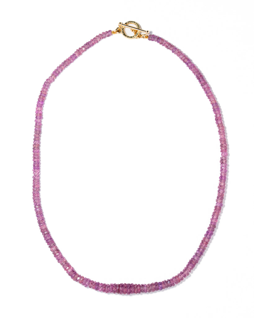 Collier met roze saffieren met een 18k geelgouden sluiting. De lengte van de ketting is 44,5 cm. Het is een enkelstuk.
