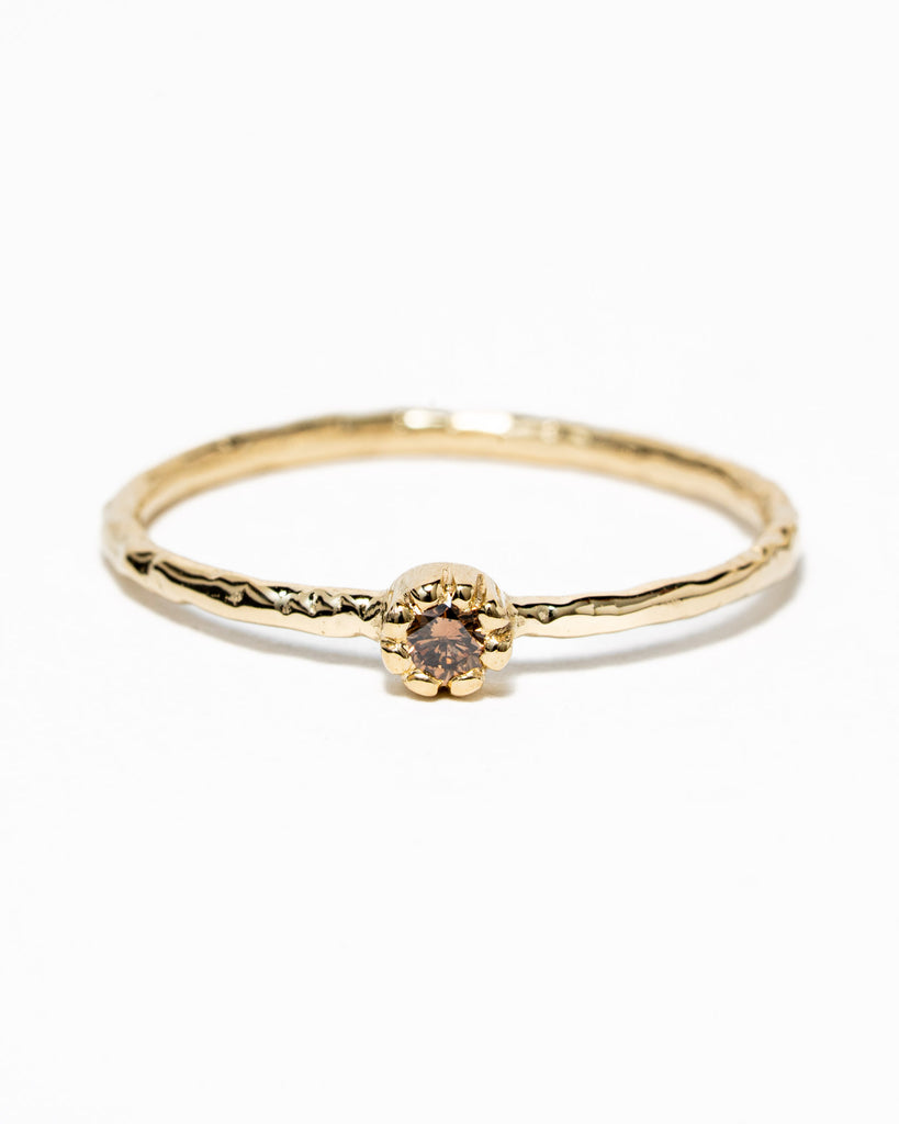 Fijne Naoki ring in 14k geelgoud gemaakt met een fancy brown diamantje van 0.06 caraat.