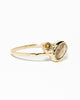 Fijne ring gemaakt van 14k geelgoud met een gele saffier en een olive green diamantje