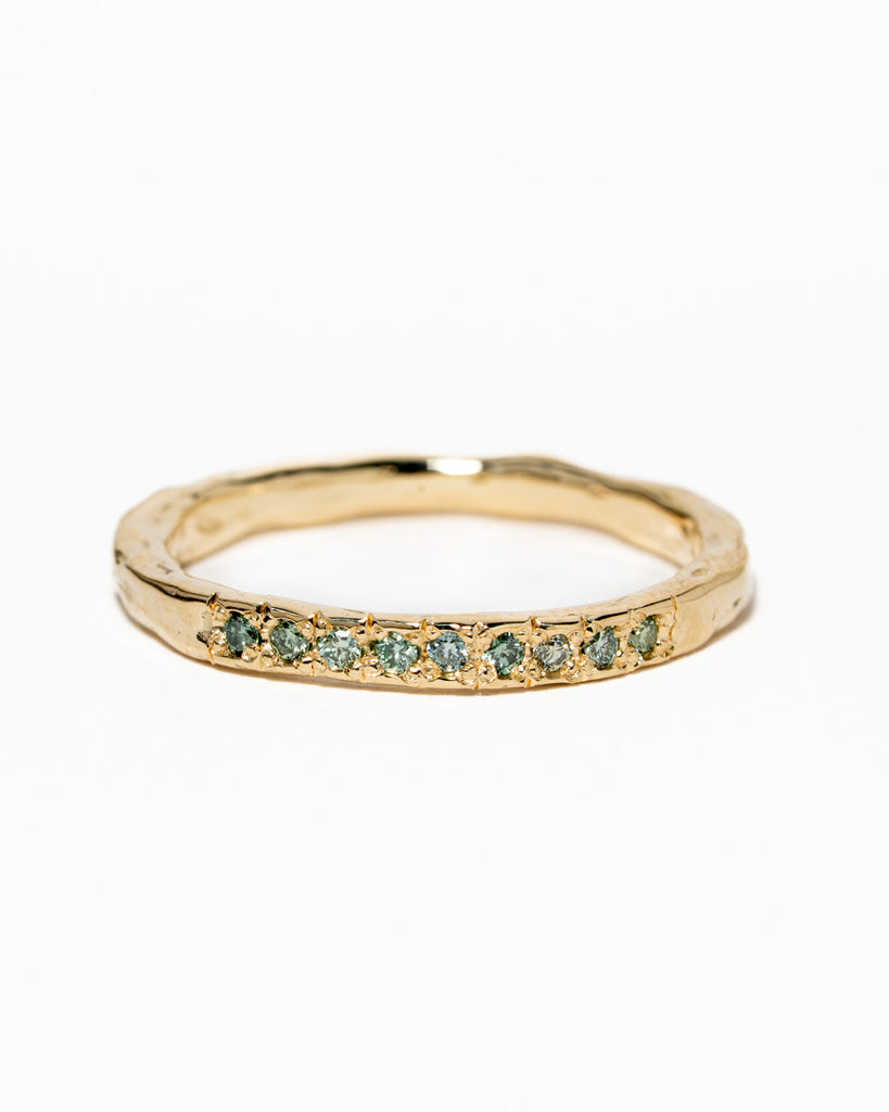 Grillige aanschuifring met mintgroene diamantjes