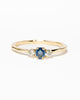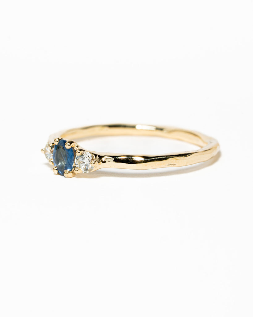 Ring Amber gemaakt van 14k geelgoud met een ovale blauwe saffier in het midden en twee H-si diamantjes van in totaal 0.10 ct ernaast. Mooie klassieke ring.