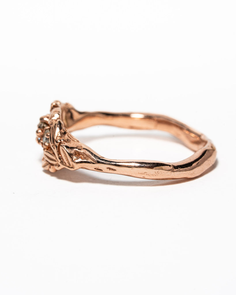 Ring Doloris in 14k roodgoud met 3 cape kleurige diamanten van in totaal 0.19 caraat. Prachtige feeërieke uitstraling.