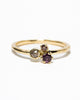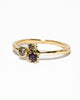 One of a kind ring gemaakt in 14k geelgoud met een edelstenencluster met een robijn van 0.11ct, rose cut light brown diamantje van 0.12ct en een choco brown diamantje van 0.03ct.