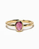 Ring gemaakt van 14k geelgoud met een roze cabochon geslepen robijn van 1.11 caraat in een gladomzetting.