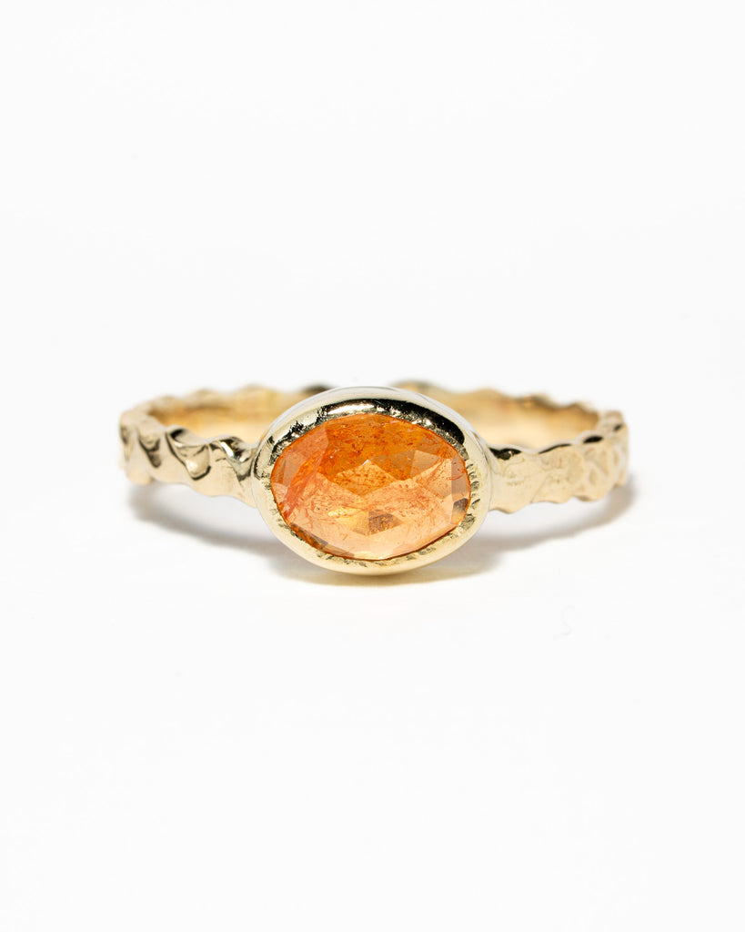 Ring van 14k geelgoud met een mandarijngranaat. De ring is een enkelstuk.