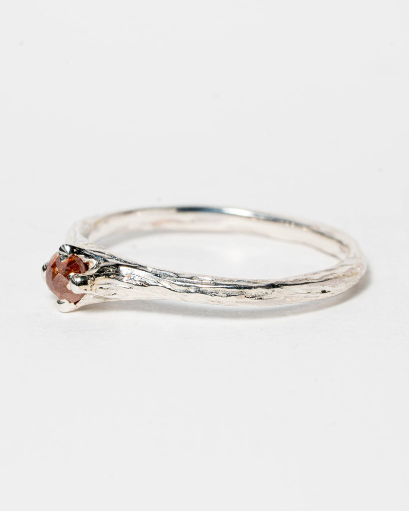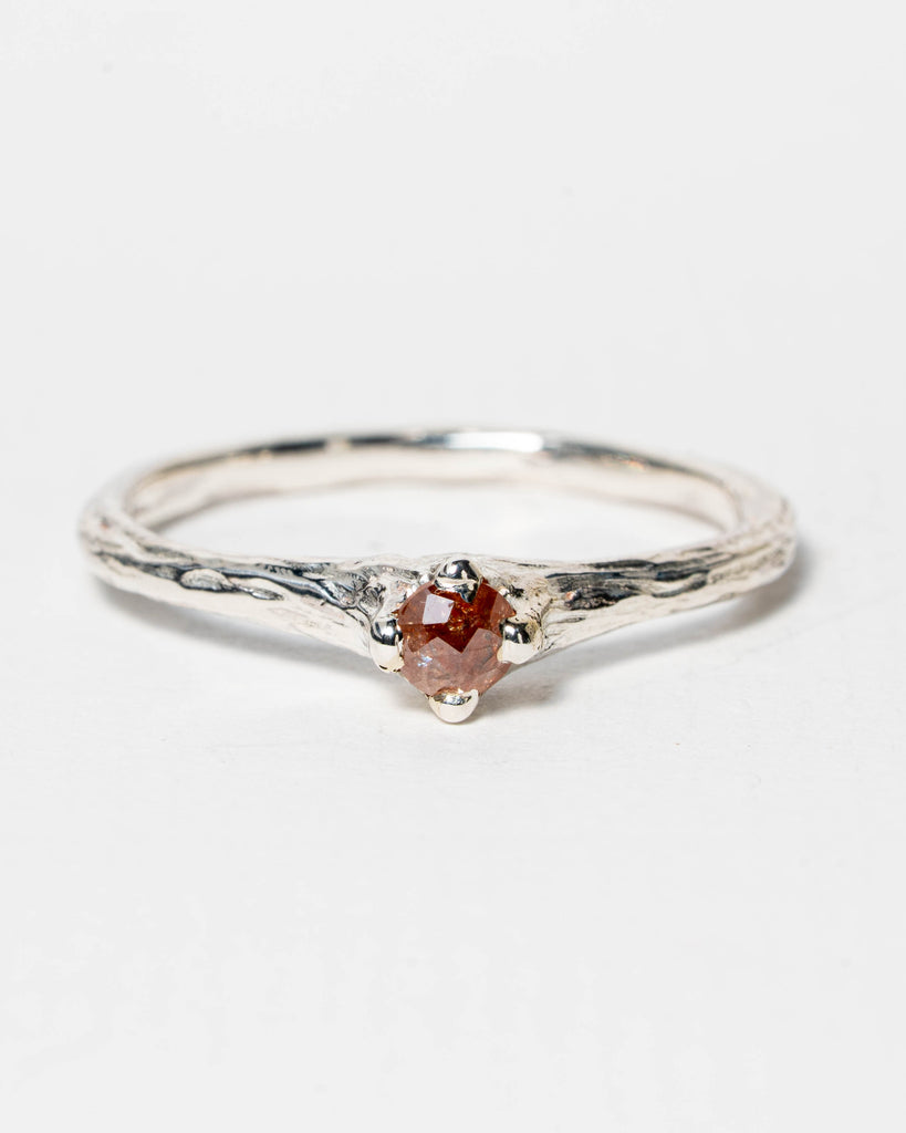 One of a kind zilveren ring met een oranjebruine diamant van 0.28 caraat. Valt als een ruime maat 18 mm.