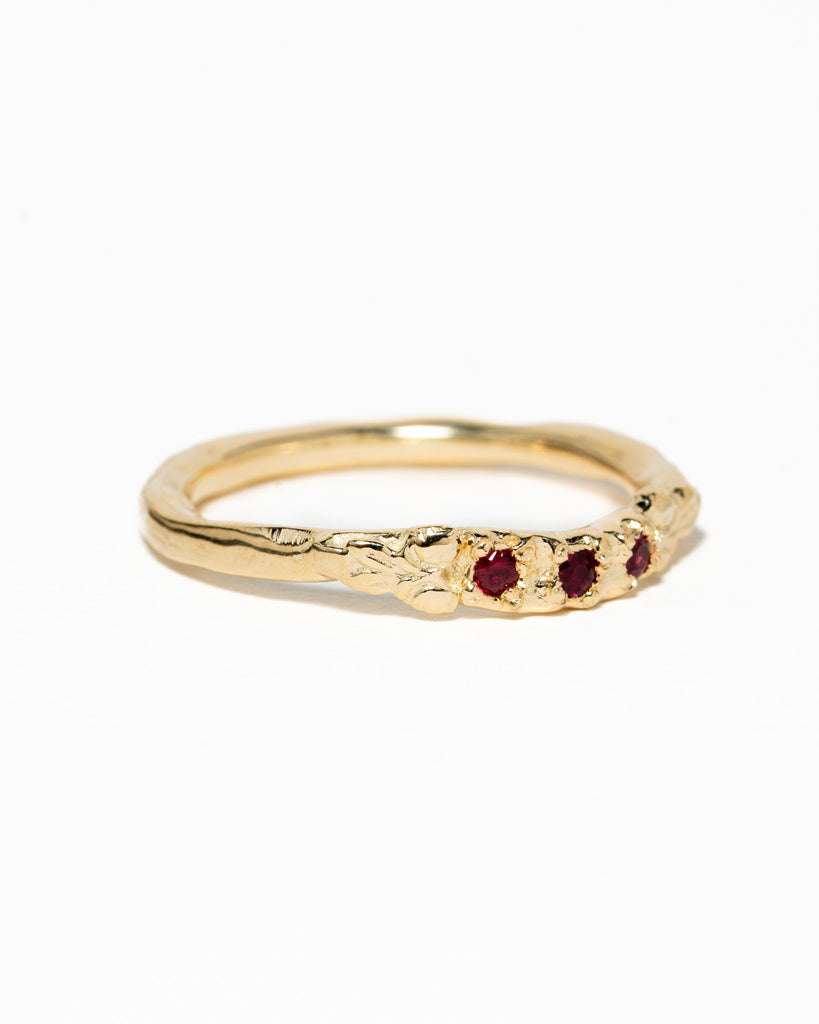 Ring Nala gemaakt van 14k geelgoud met 3 robijntjes