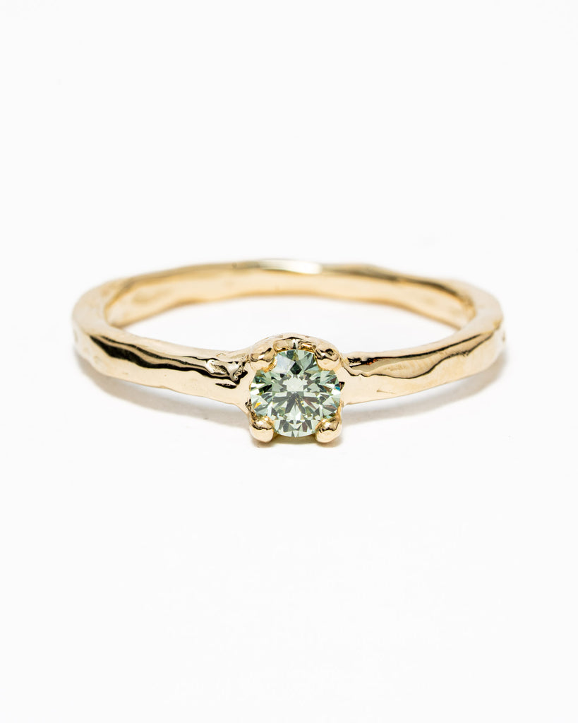 Ring Suzy gemaakt in 14k geelgoud met een mint groene diamant van 0.29ct in 4-poot zetting. Mooi als verlovingsring.