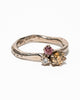 Geweldige ring Abbey gemaakt in 14k palladiumwitgoud met drie diamanten: een amberkleurige diamant van 0.43 caraat, een paarse diamant van 0.11 caraat en een J-si diamant van 0.04 caraat. De ring is one of a kind. Staat mooi op een donkere huid.