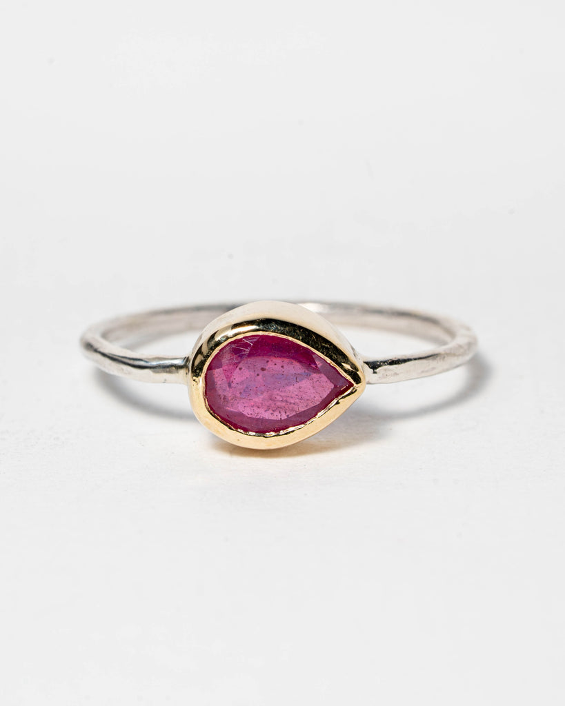 Zilveren ring met een knalroze saffier in 14k geelgoud gezet.