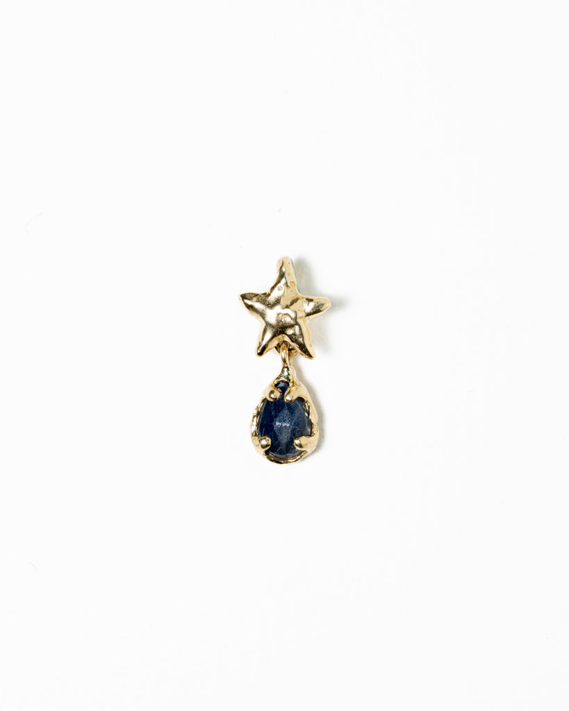 One of a kind hangertje met 14k geelgoud ster met een druppelsaffier van 0.56 caraat. Afmeting ± 16 x 7 mm.