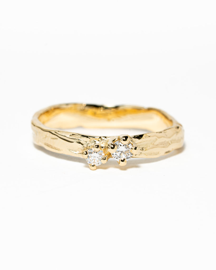 Mooie grillige ring Farah in 14 krt geelgoud met twee F-vvs diamanten van in totaal 0.15 caraat.