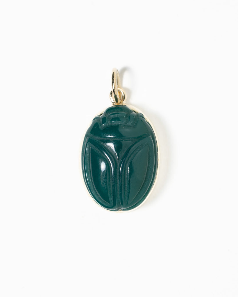 Hanger van 14k geelgoud met een groene scarabee van agaath van 18 x 13 mm.