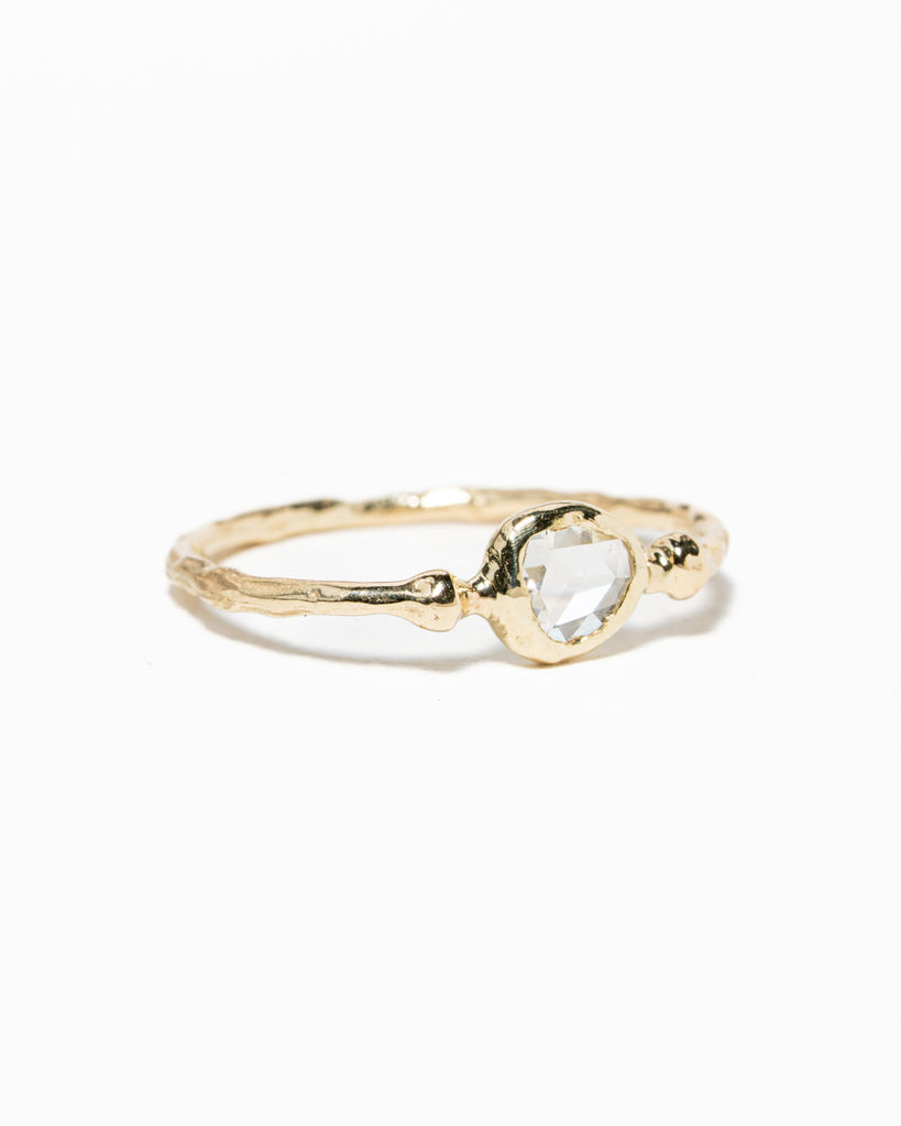 Ring Tess gemaakt van 14 karaat geelgoud met een antieke roos geslepen diamant van 0.48 caraat. Mooi elegant ringetje.