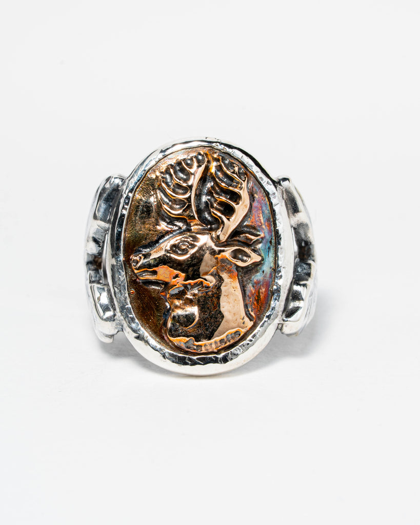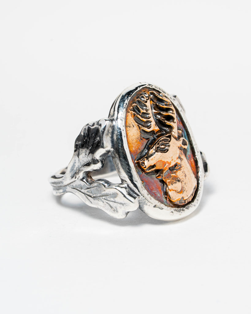 Zegelring met bronzen hertcamee