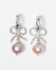 Zilveren huggies met strikjes en roze zoetwaterparels. De huggies hebben een diameter van 10 mm. De totale lengte van de oorhangers is 31 mm.