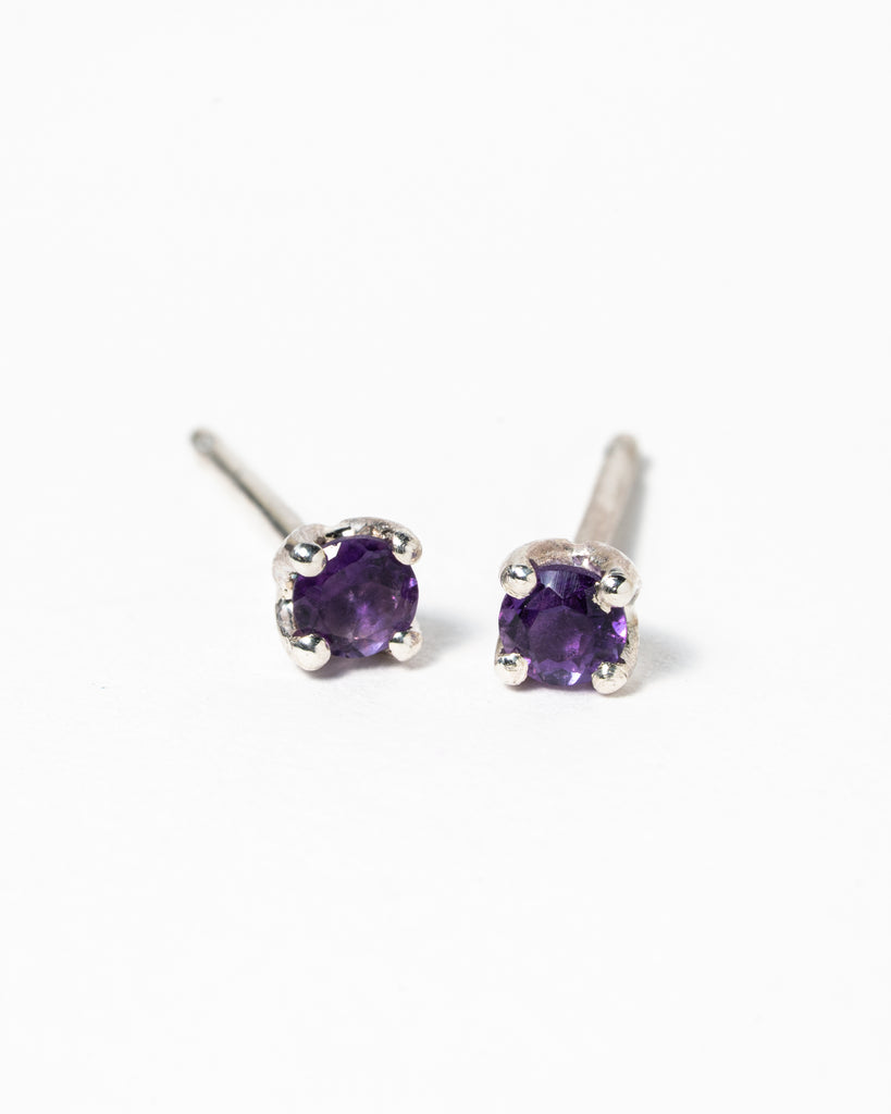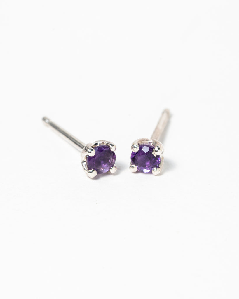 Zilveren oorstekers met amethist. De steentjes zijn ongeveer 3 mm diameter.