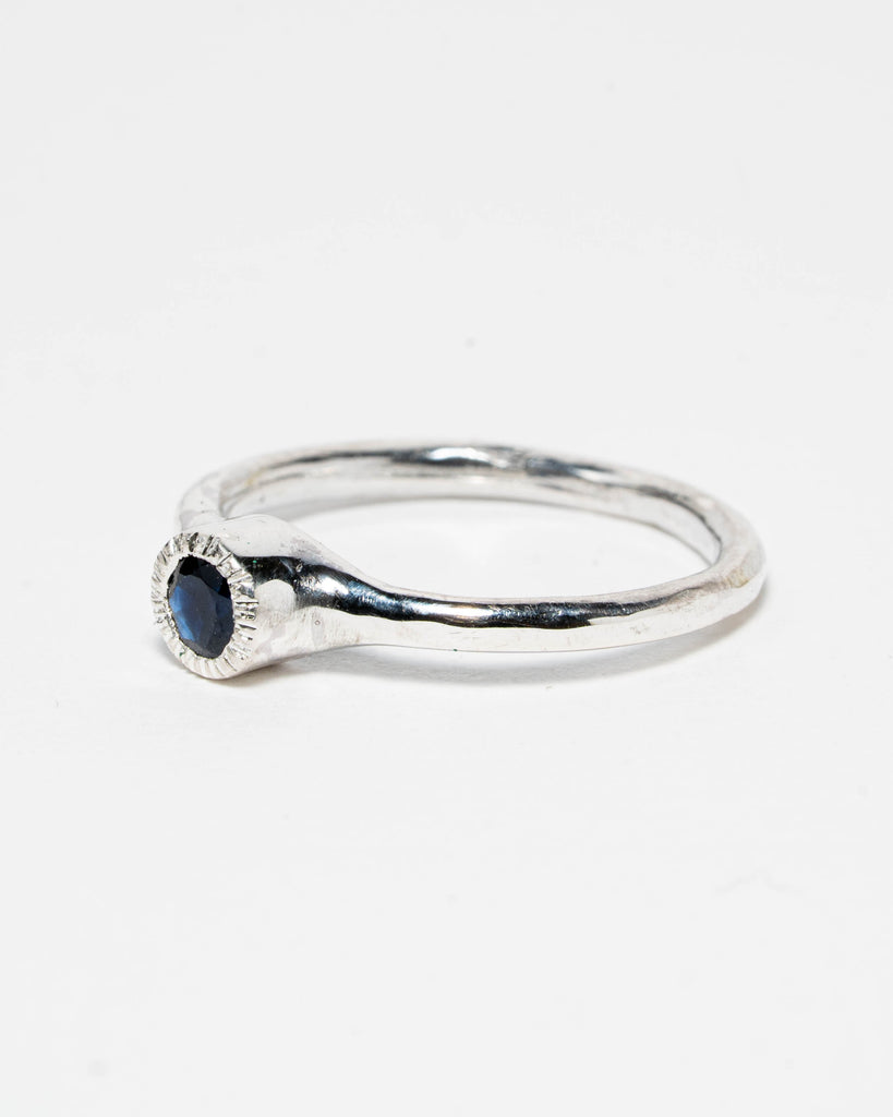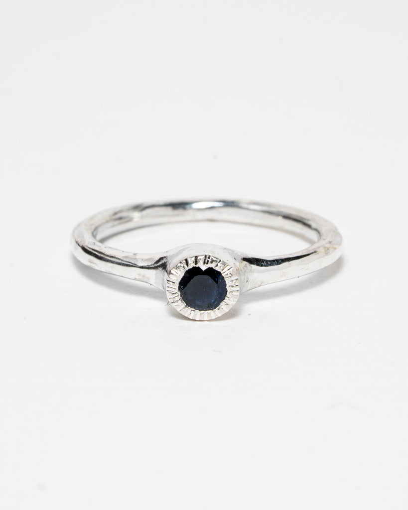 Zilver ring Polly met een bijna zwart maar diepdonkerblauwe saffier van 0.32 caraat.
