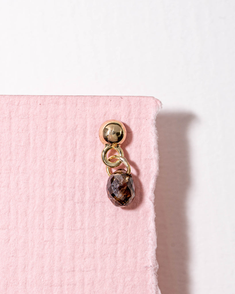 One of a kind flatback piercing met een bruine diamant briolet. Afmeting ± 3 x 8,6 mm.