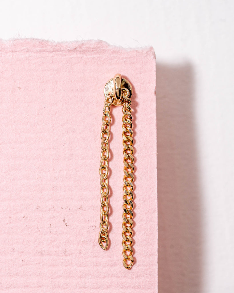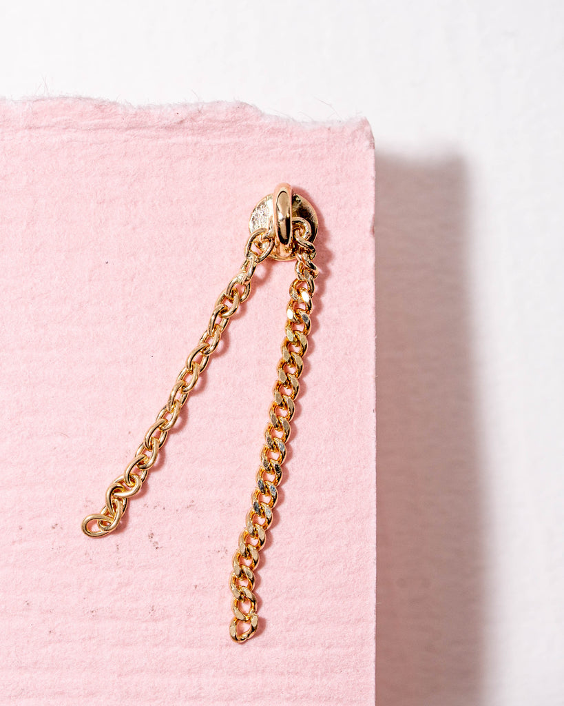 One of a kind flatback piercing met een gouden kettinkjes. Afmeting ± 19 mm totale lengte.