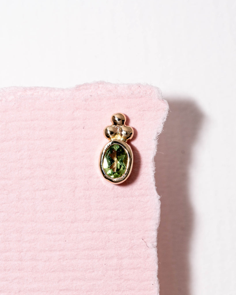 One of a kind flatback piercing met groene toermalijn van 0.17 caraat. Afmeting ±3,7  x 7,8 mm.