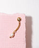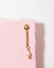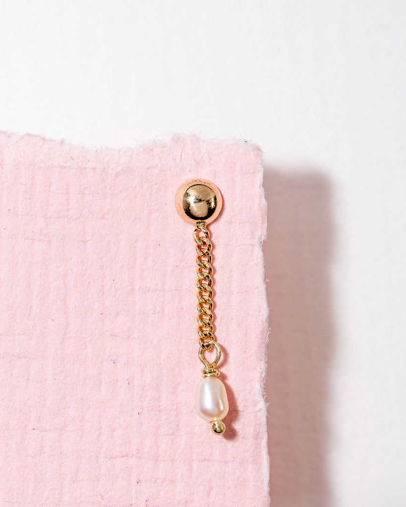 One of a kind flatback piercing met wit rijstpareltje. Afmeting gouden bolletje 2,8 mm. Totale lengte ± 4 mm. Pareltje ± 3 x 2,1 mm.