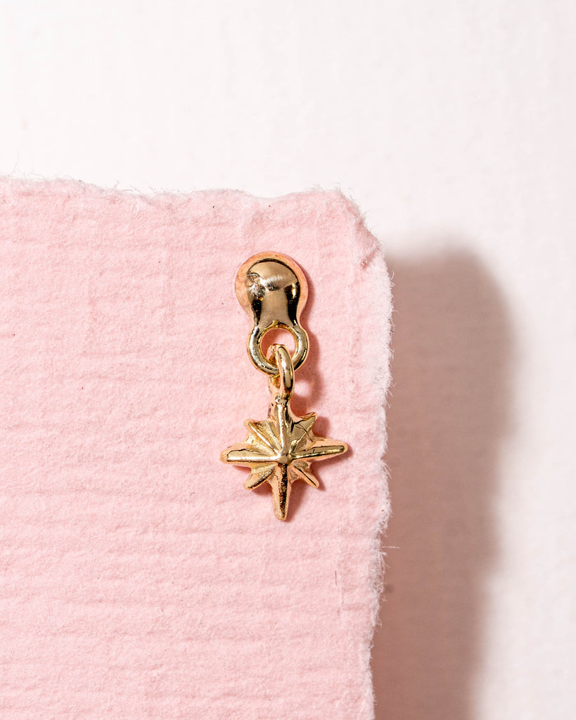 One of a kind flatback piercing met een bedeltje met sterretje. Totale lengte ± 10 mm.