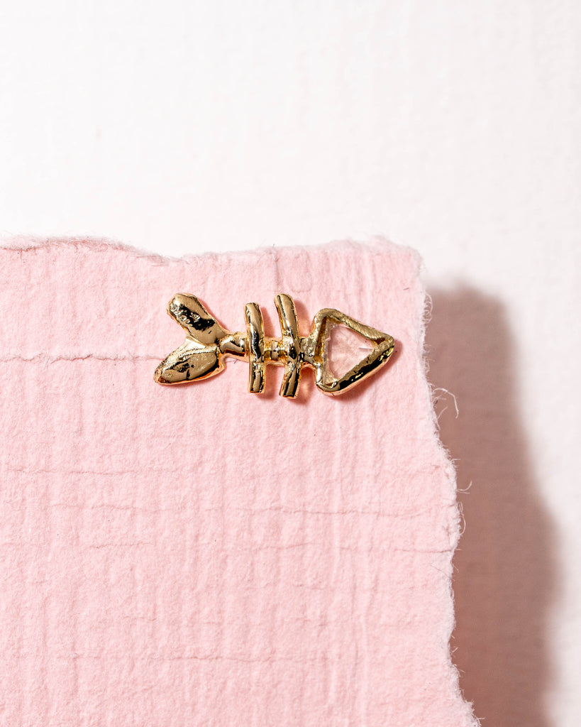 One of a kind flatback piercing met 14k gouden visje met diamantje in kop. Afmeting ± 4,1 x 9,6 mm.