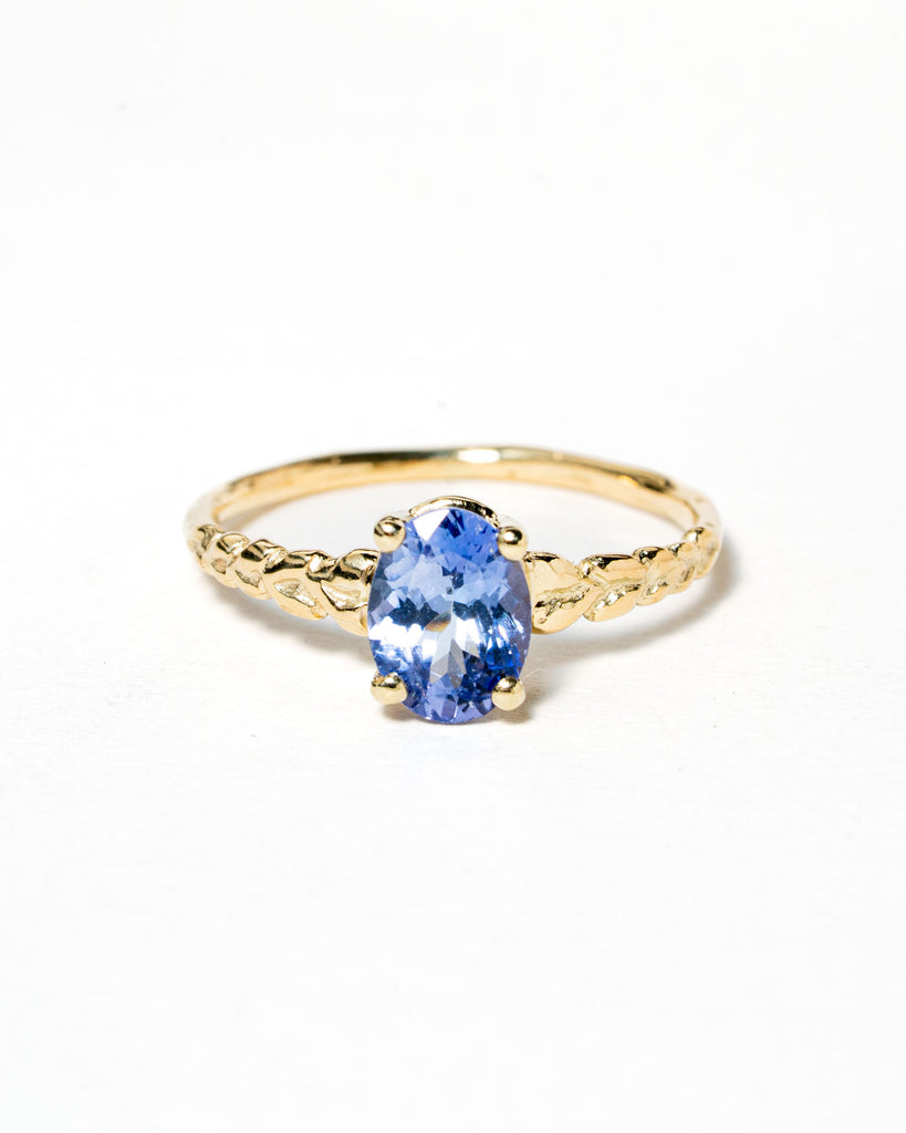 One of a kind ring Caeserine gemaakt van 14 karaat geelgoud met een prachtige lavendel blauwe tanzaniet van 1.09 caraat.