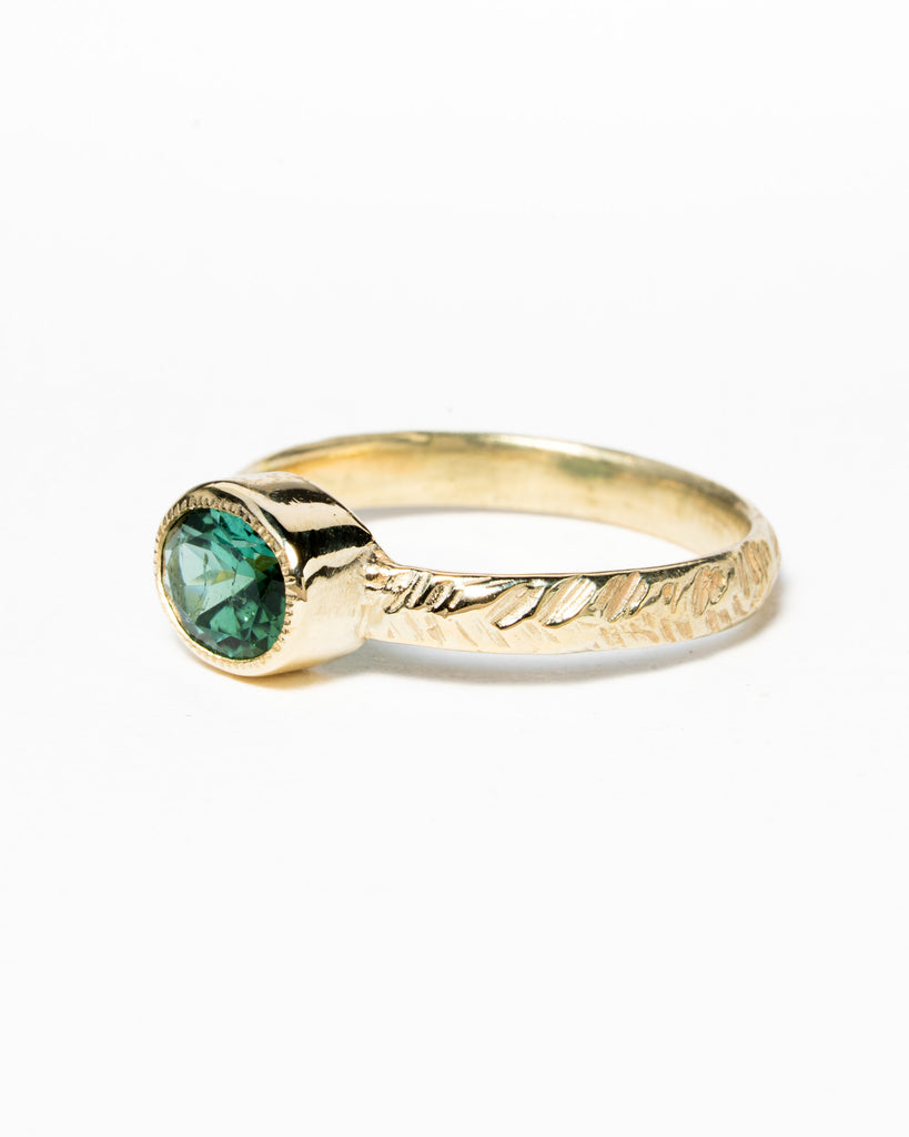Ring van 14k geelgoud met een prachtige levendige groene toermalijn van 1.19 caraat in een gladomzetting.