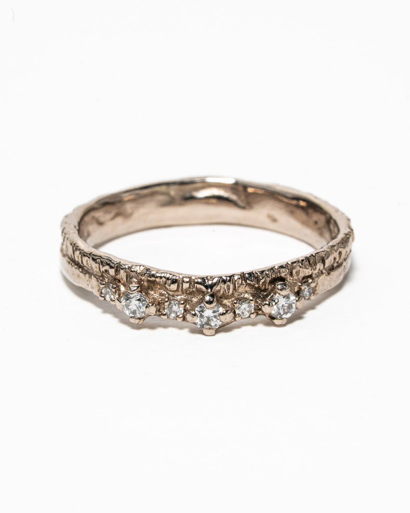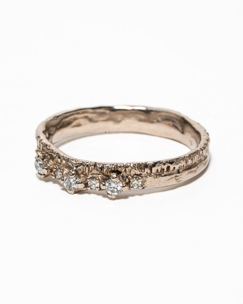 Ring Indy in 14krt palladiumwitgoud met witte H-si diamantjes van 0.13 caraat in totaal.
